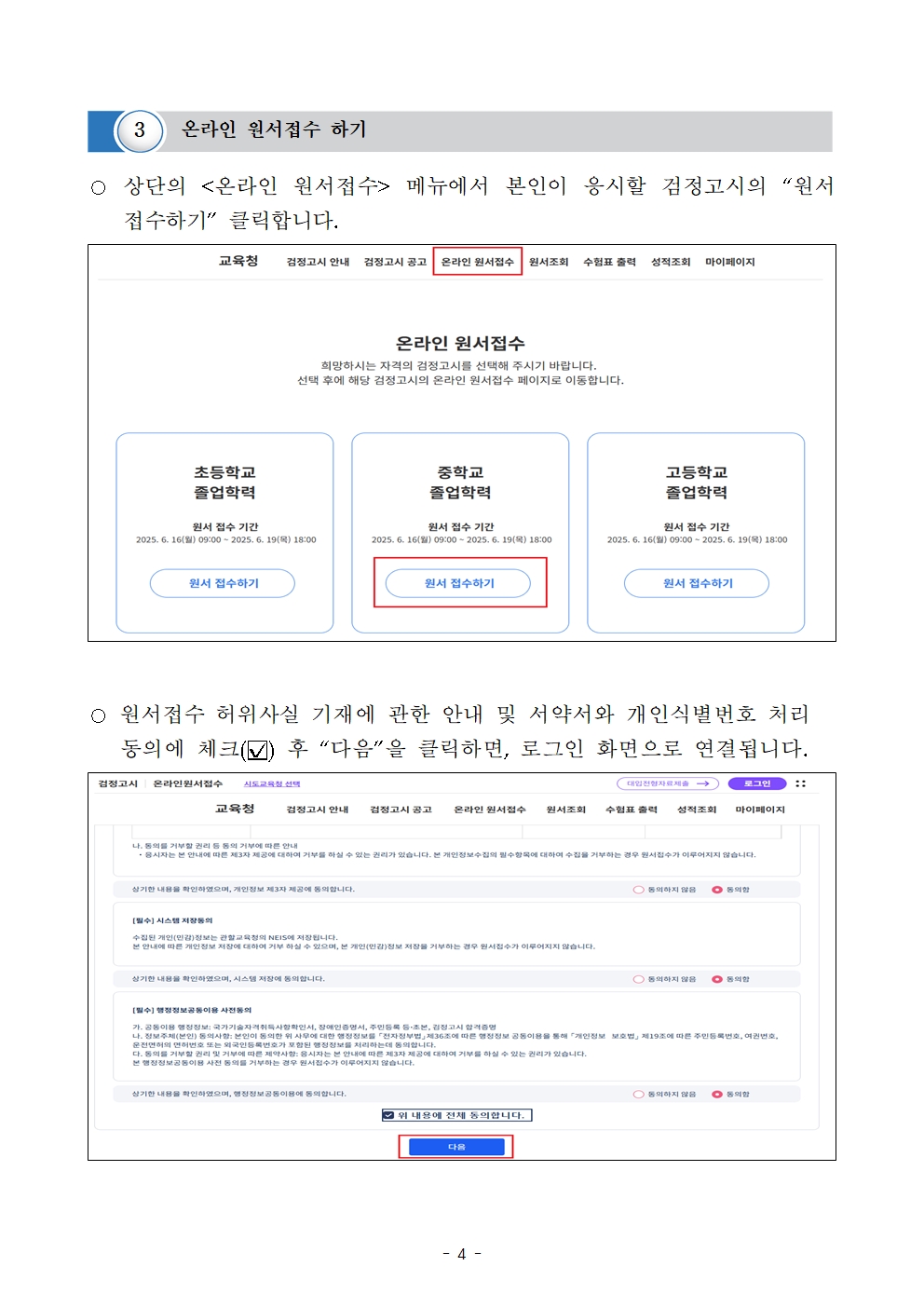 나. 온라인접수: 2025. 6. 16.(월) 09:00 ~ 6. 19.(목) 18:00 [4일간]