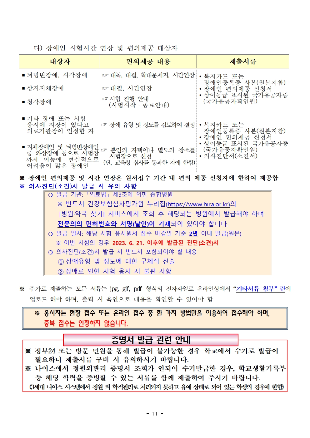 ※ 최종학력증명서는 정부24 또는 가까운 초·중·고등학교 행정실, 시도교육청 및 교육지원청 민원실, 주민센터 방문 민원을 통해 발급 가능