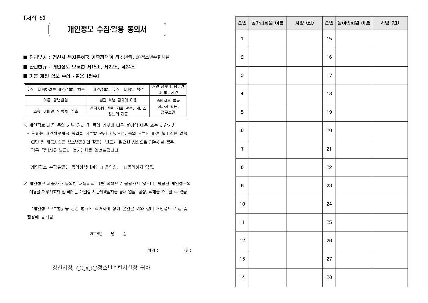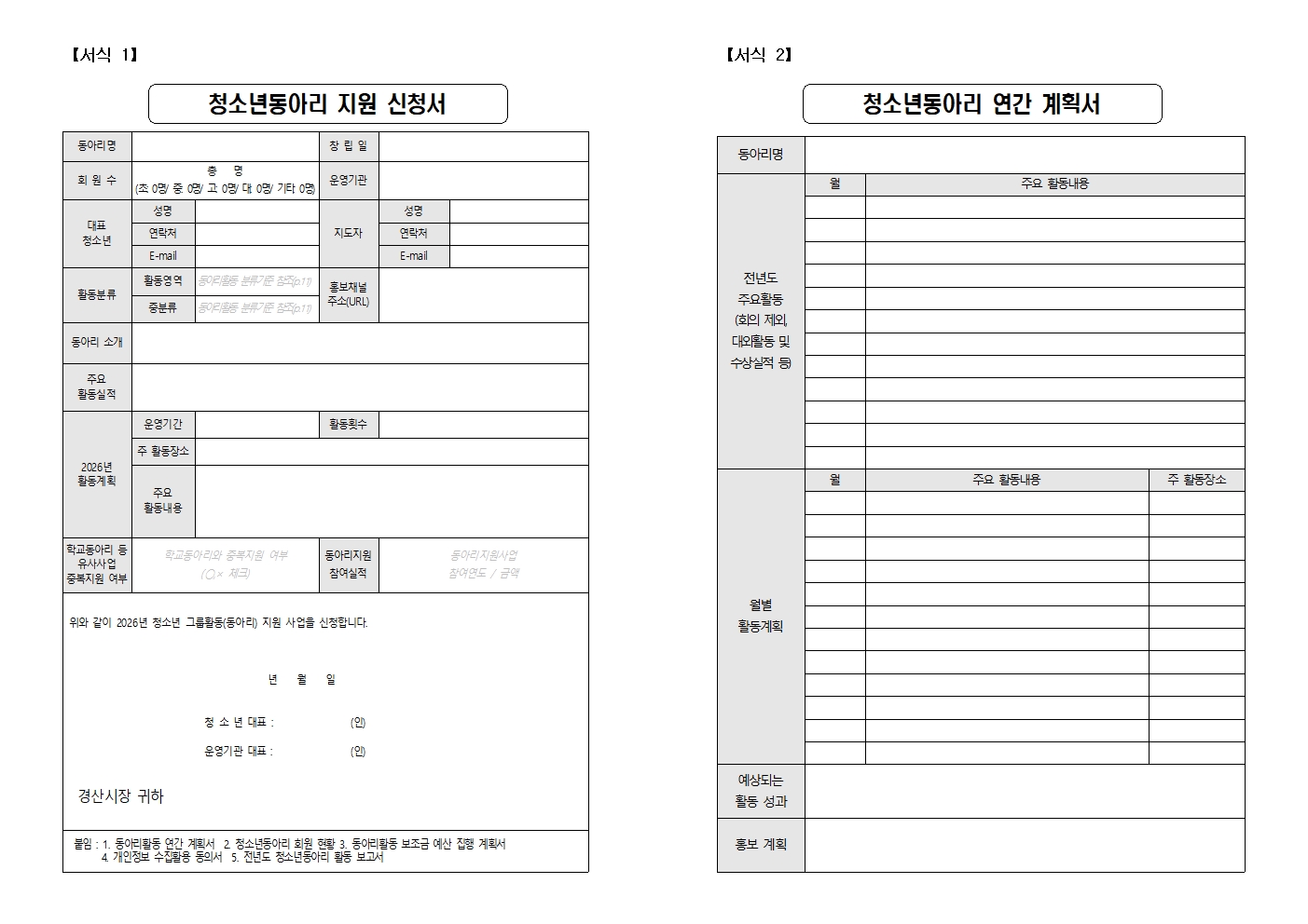 붙임 경산시 청소년동아리활동 지원사업 모집 공고문 및 신청서식 1부. 끝.