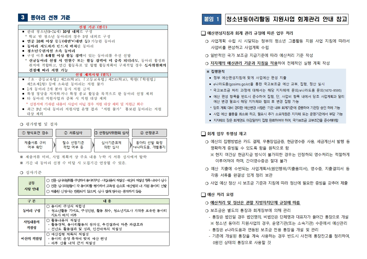* 신규동아리 및 학교 밖 청소년동아리의 경우 공고내용 참조